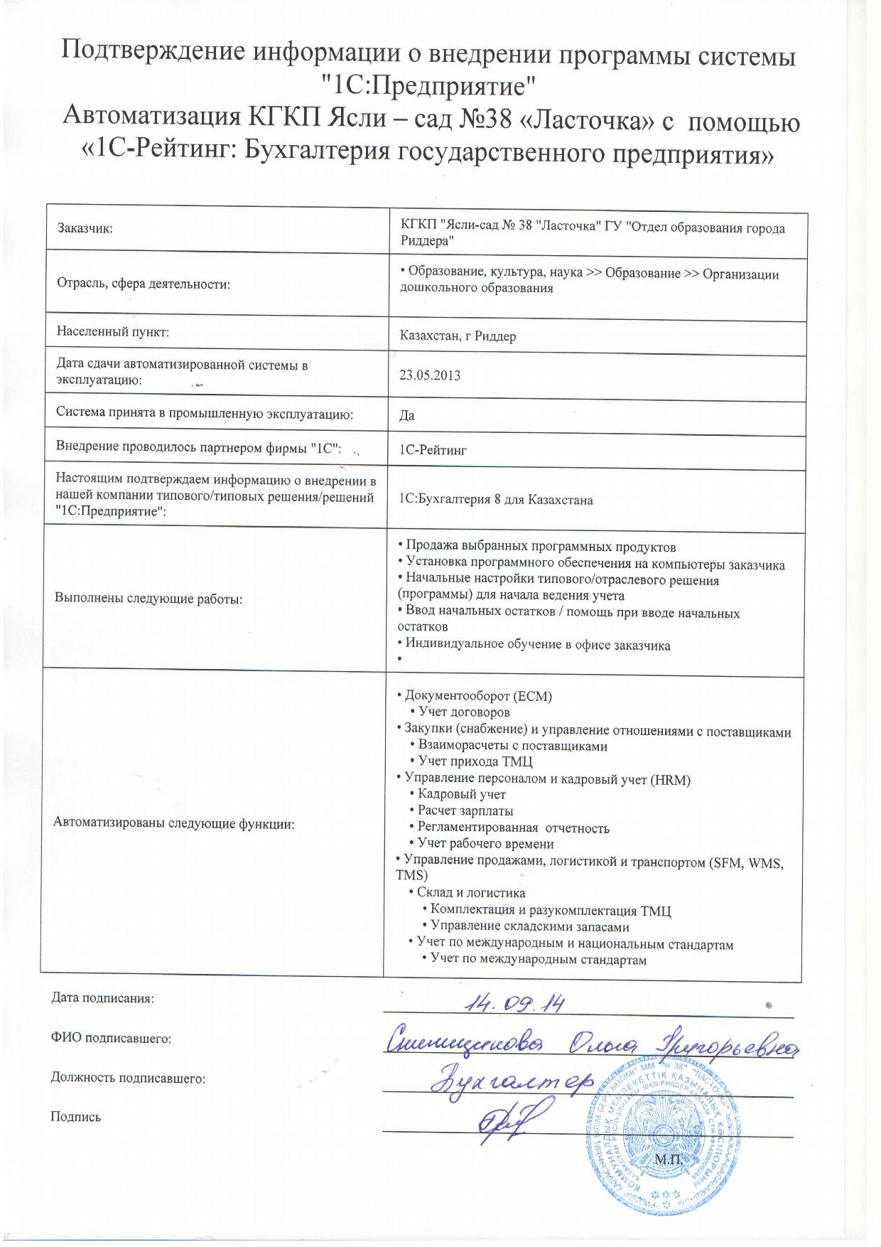 | Внедренное отраслевое решение: | |