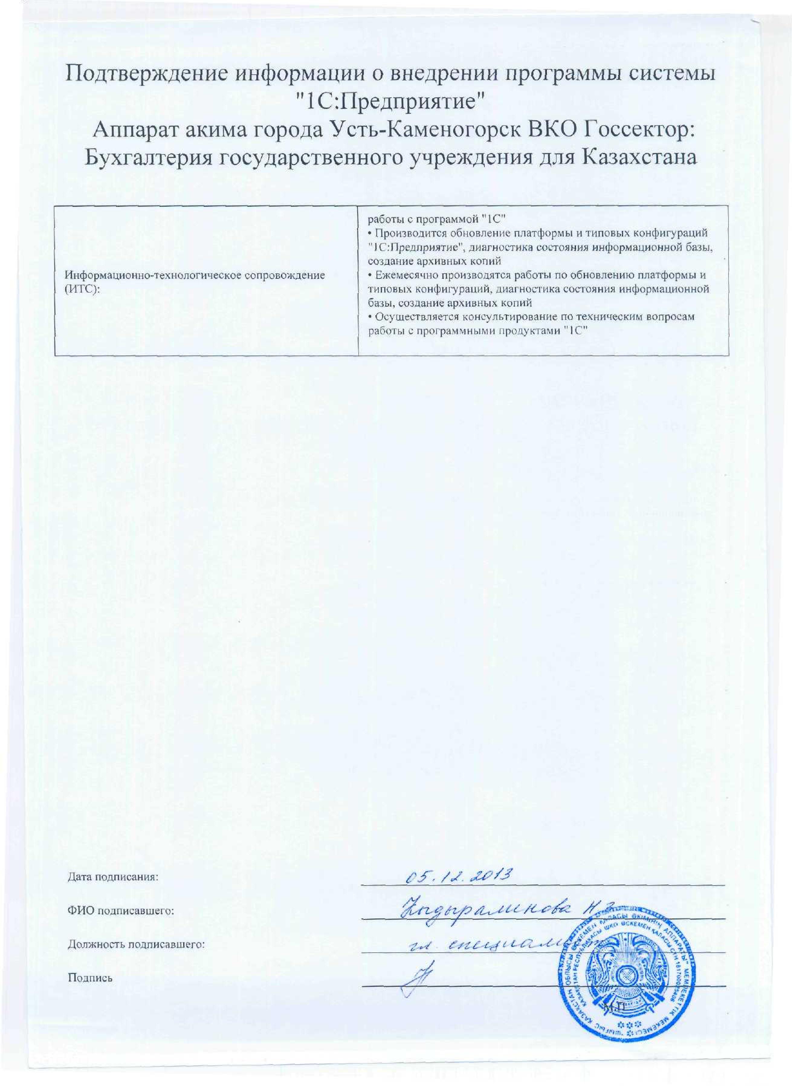 - Оформлен платный договор 1С:ИТС