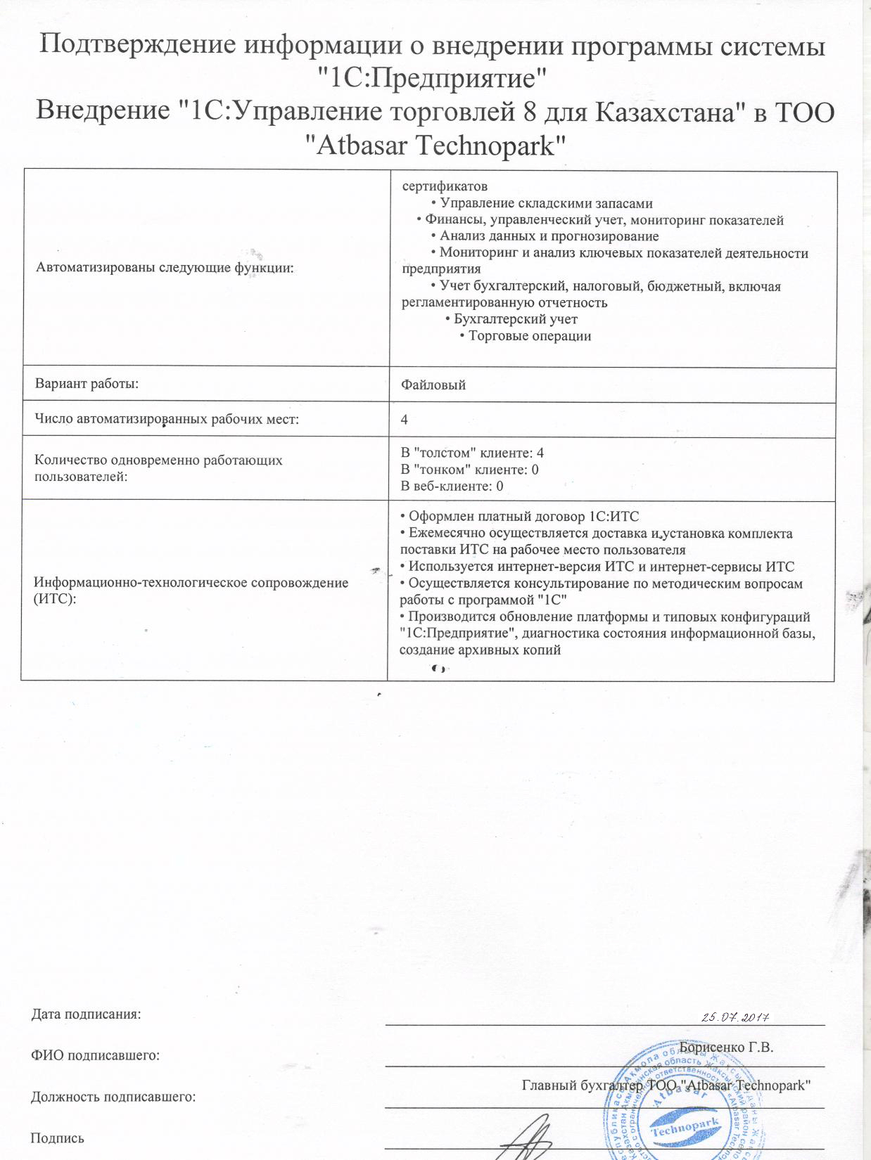| Внедренное типовое решение: | 1С:Управление торговлей 8 для Казахстана |