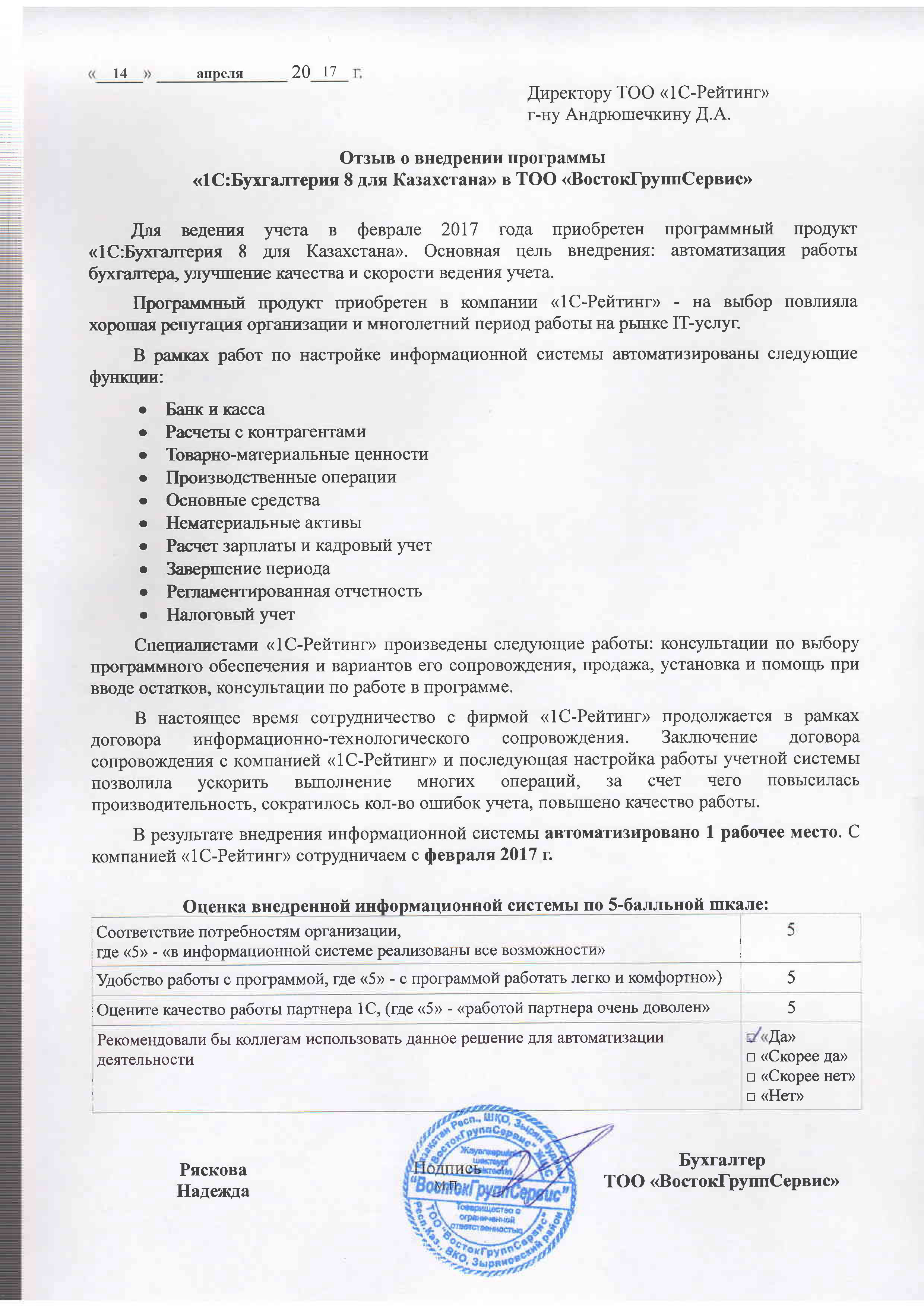 | Внедренное типовое решение: | 1С:Бухгалтерия 8 для Казахстана |