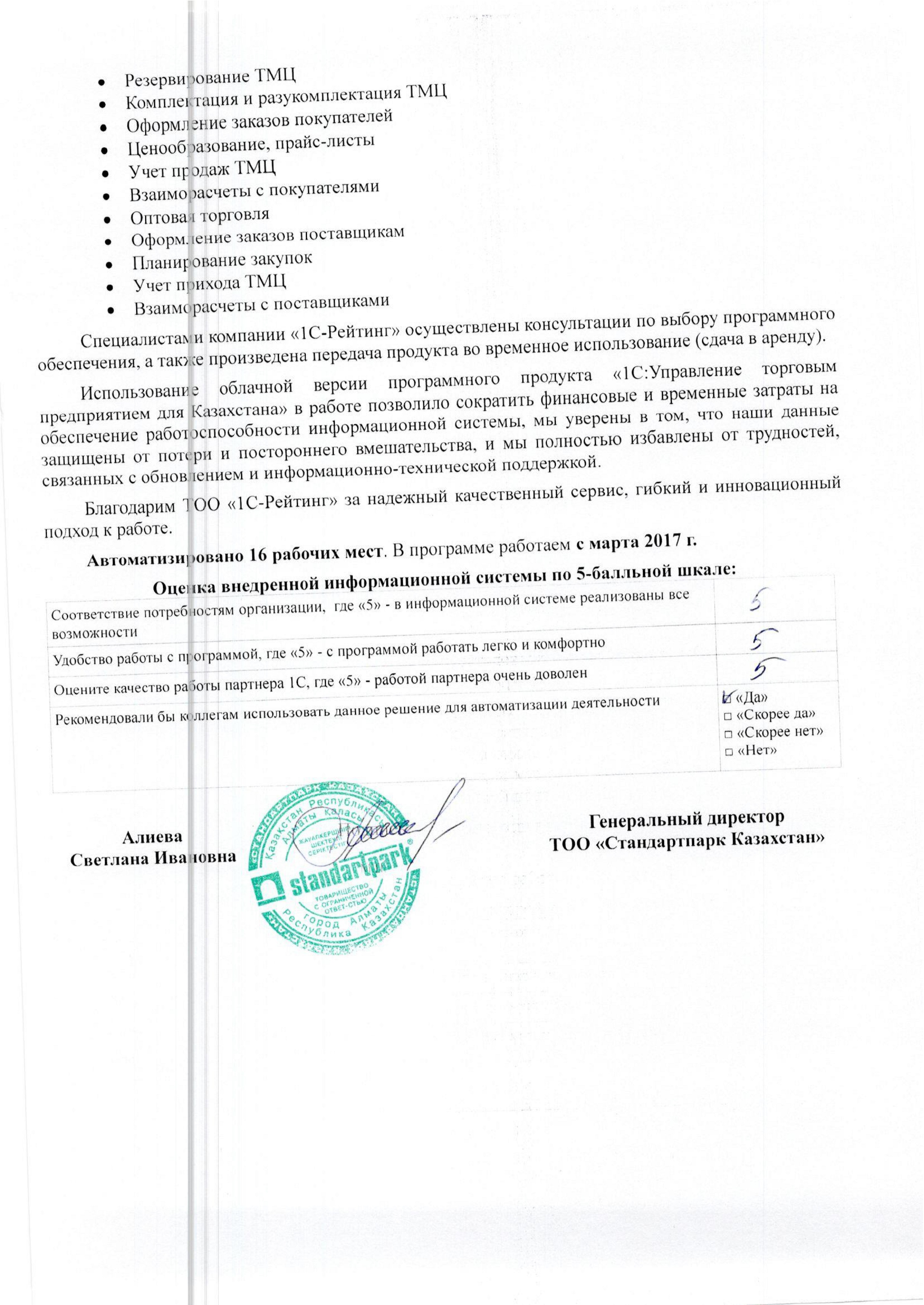 | Арендованное типовое решение: | 1С:Управление торговым предприятием для Казахстана |