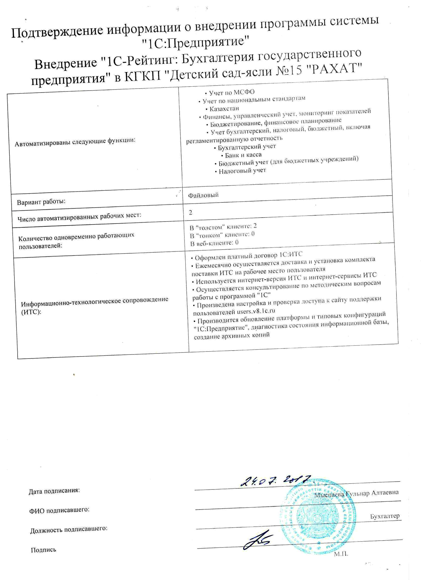 - Оформлен платный договор 1С:ИТС