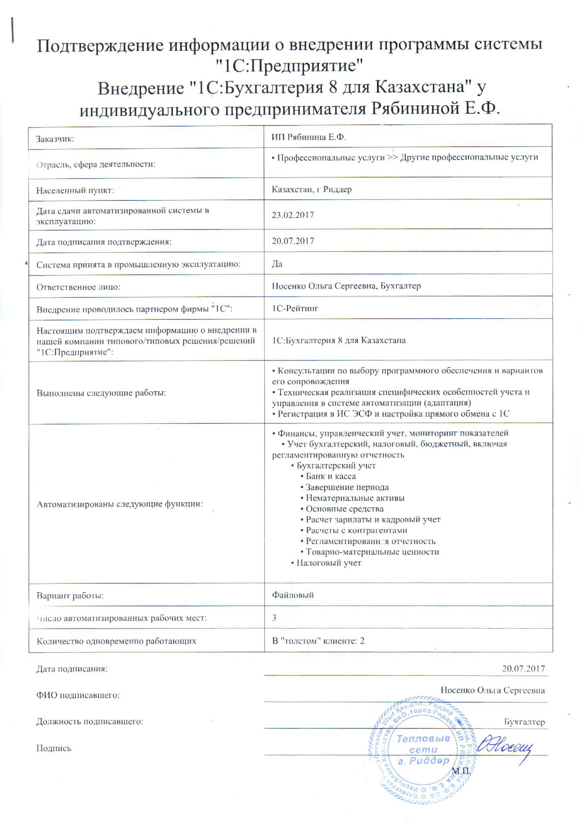 | Внедренное типовое решение: | 1С:Бухгалтерия 8 для Казахстана |