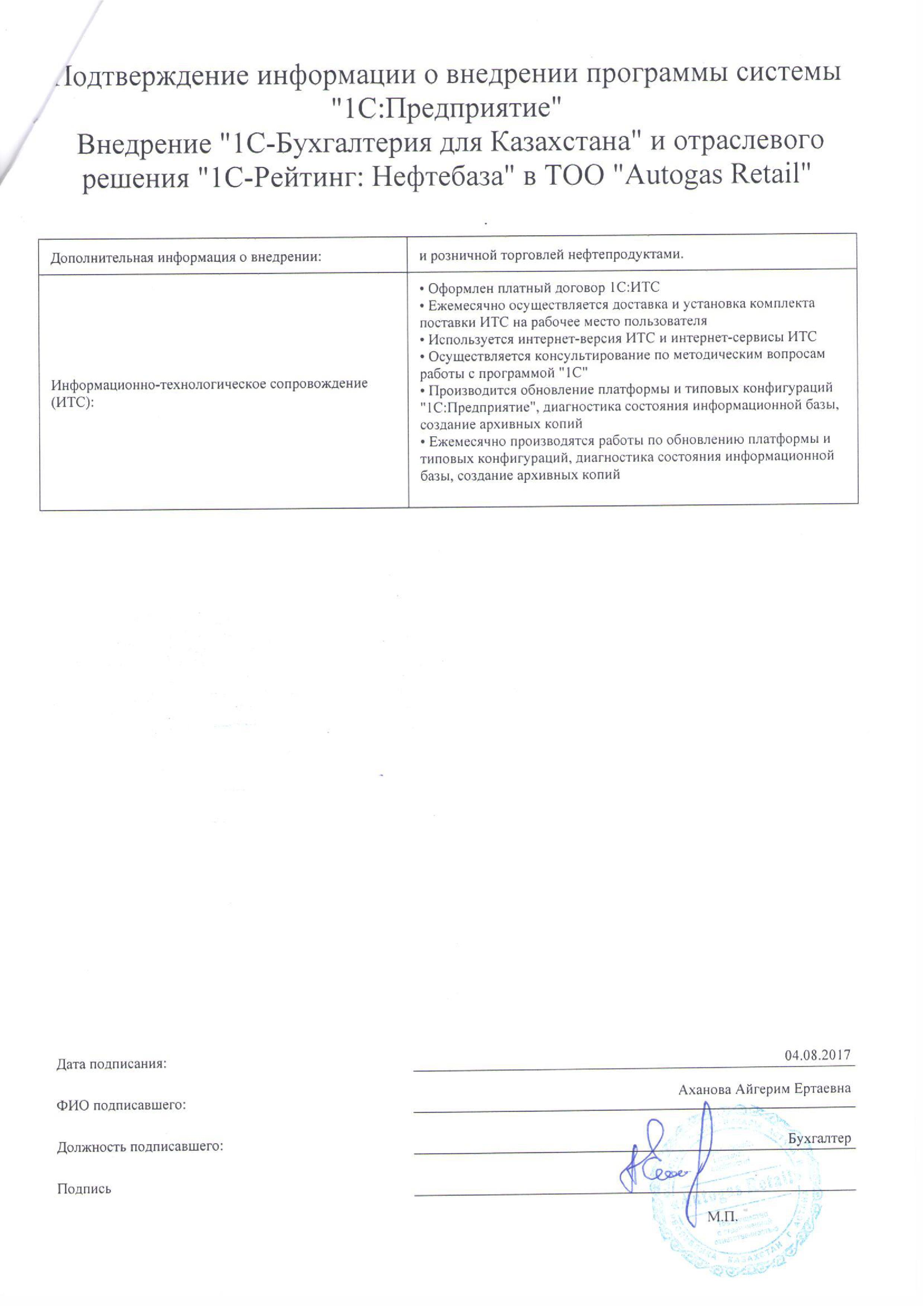 - Оформлен платный договор 1С:ИТС