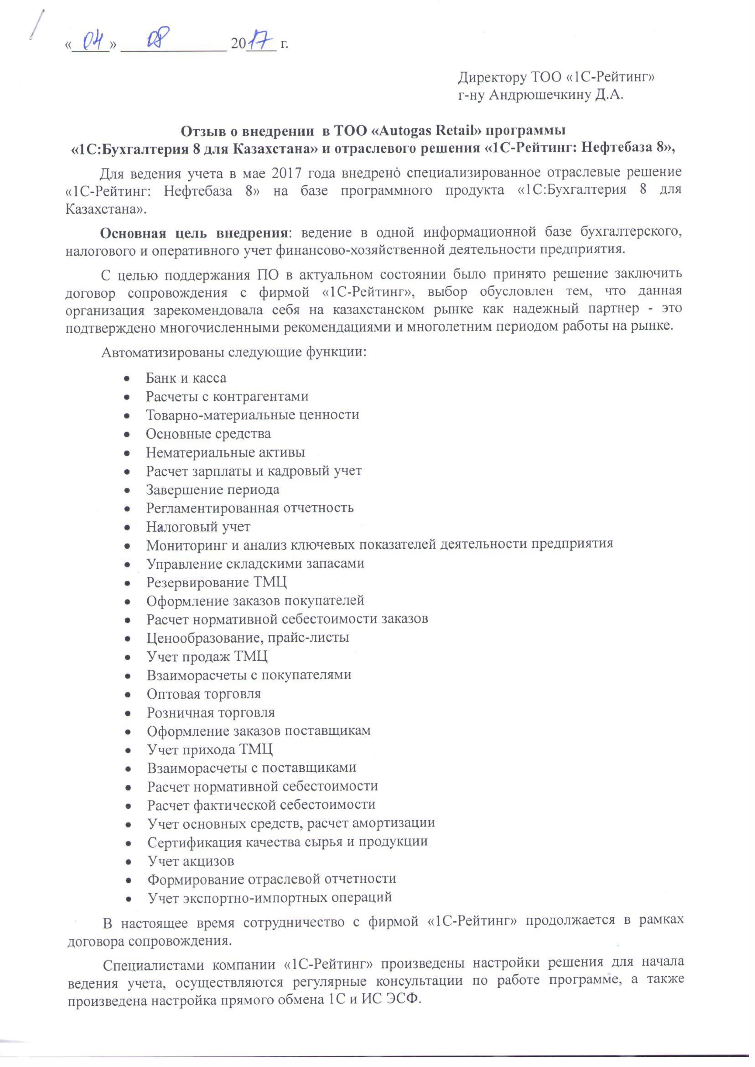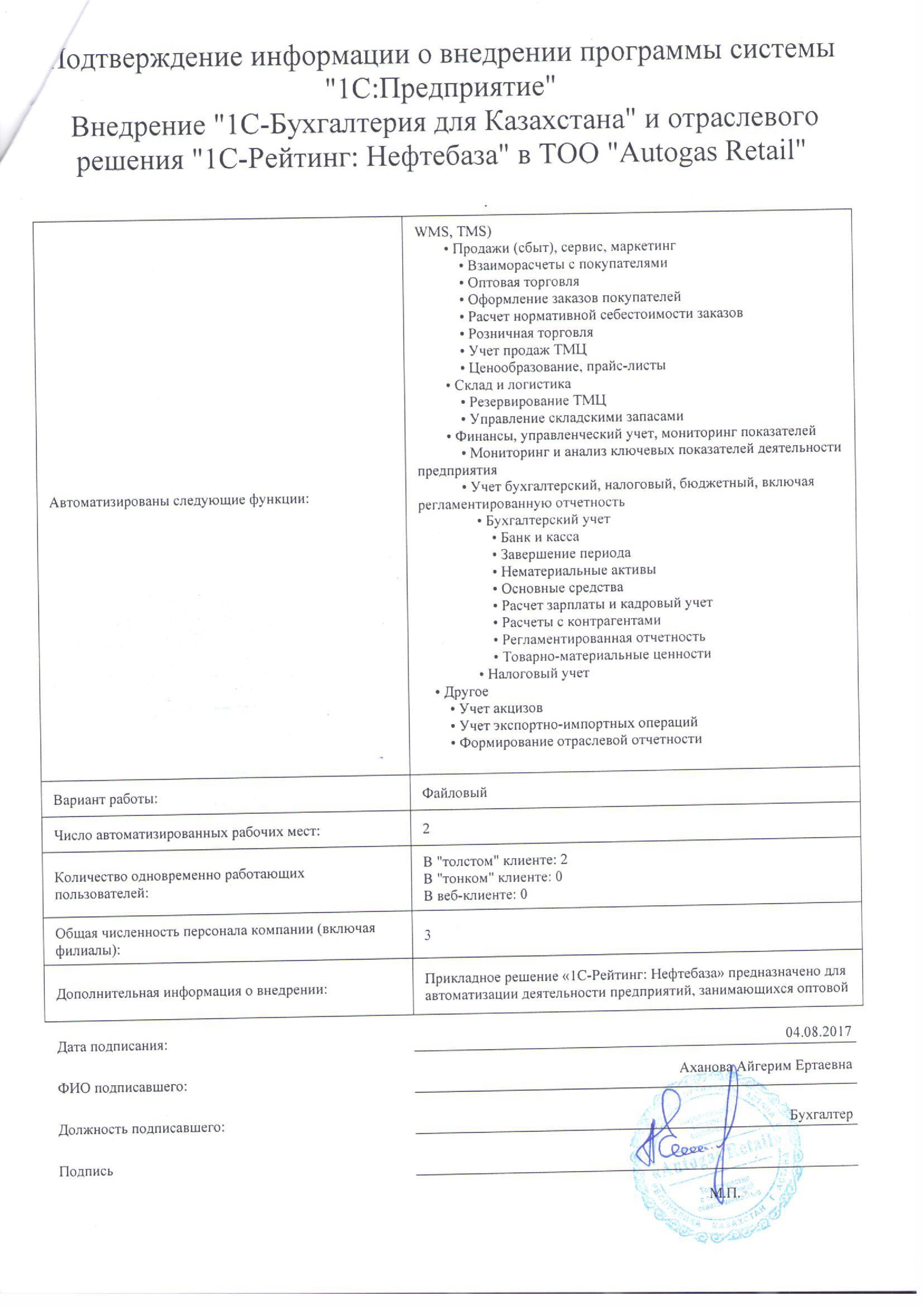 | Внедренное типовое решение: | 1С-Рейтинг: Нефтебаза |