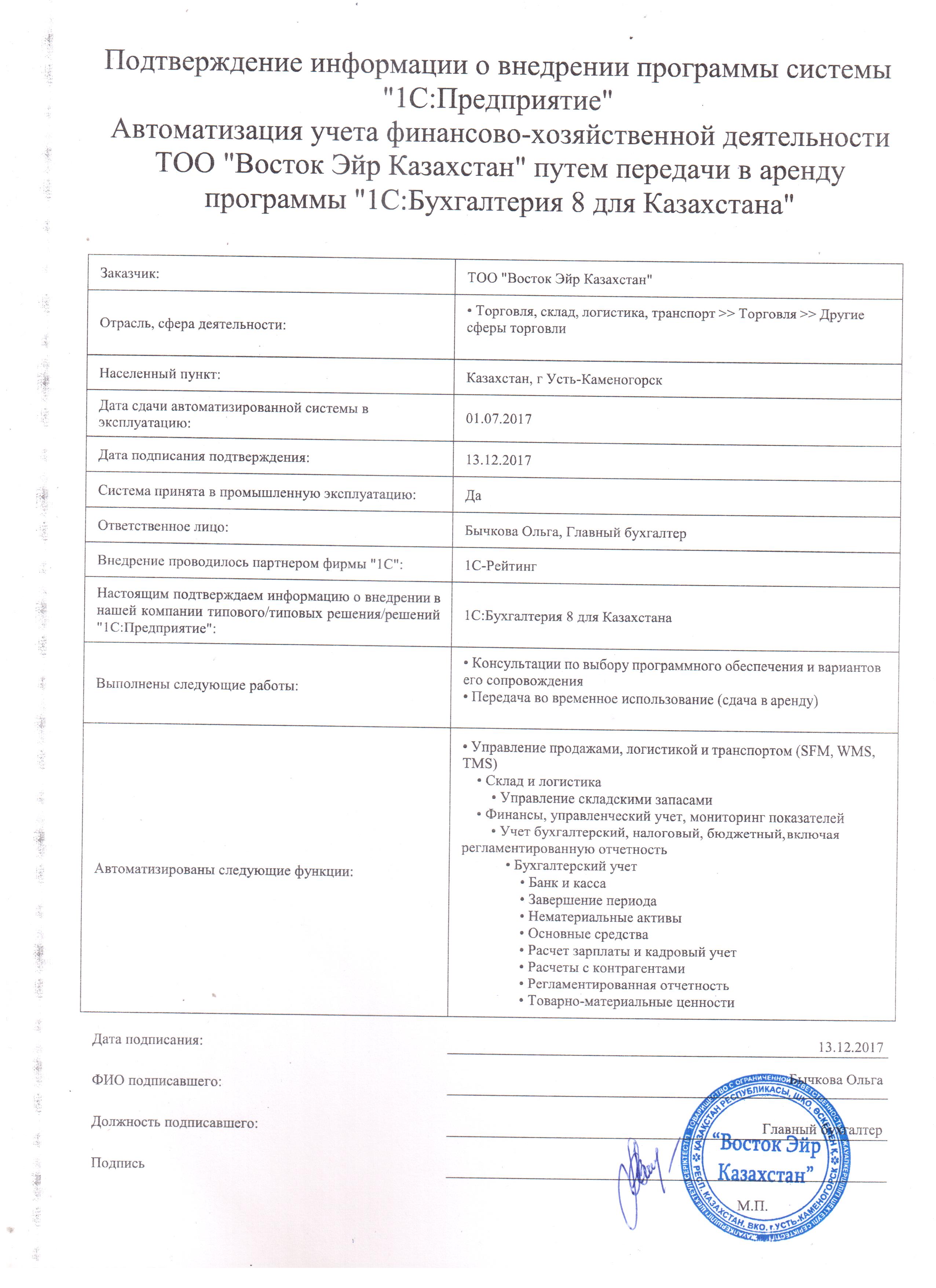 Автоматизация учета финансово-хозяйственной деятельности ТОО «Восток Эйр Казахстан» путем передачи в аренду программы «1С:Бухгалтерия для Казахстана»