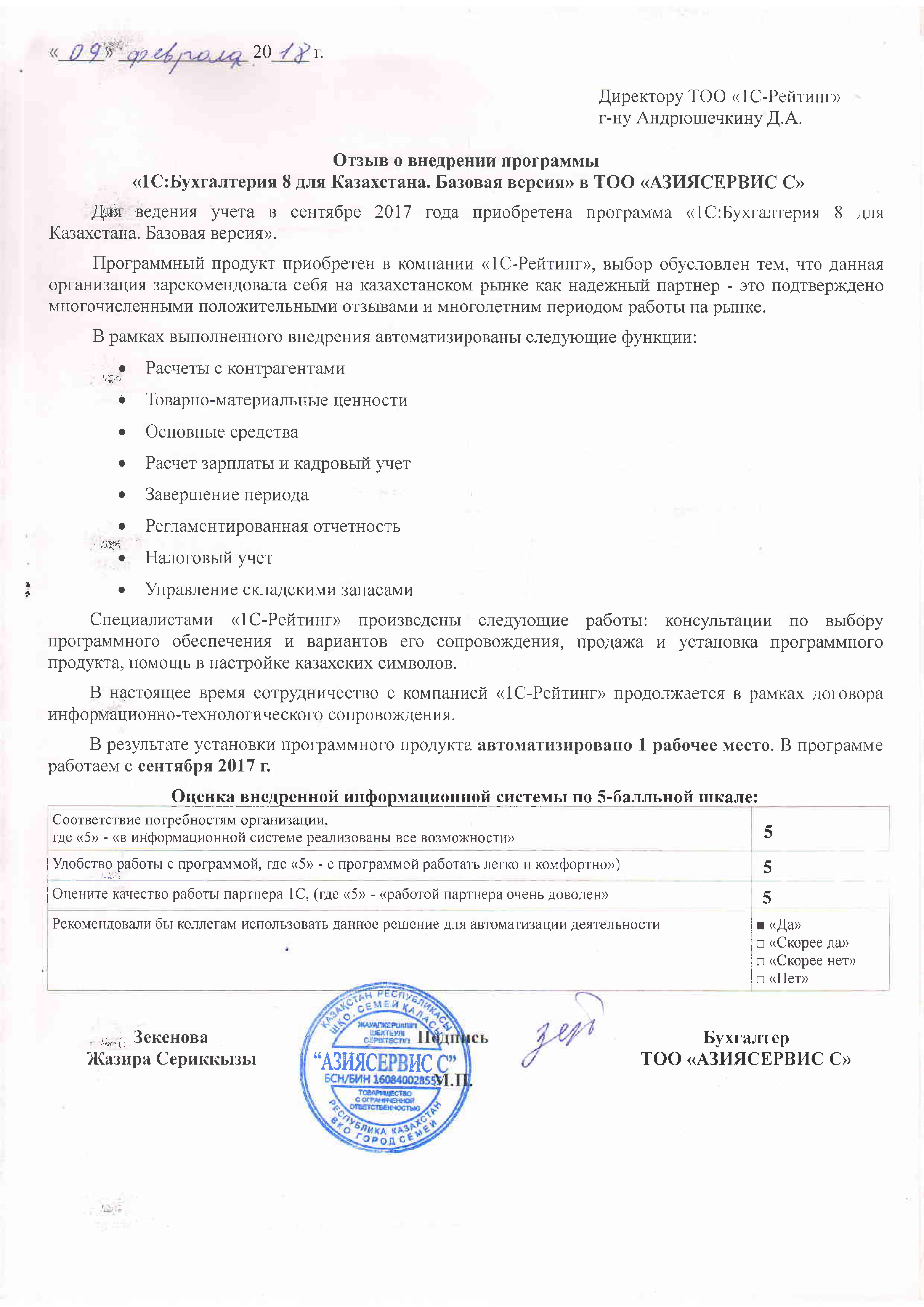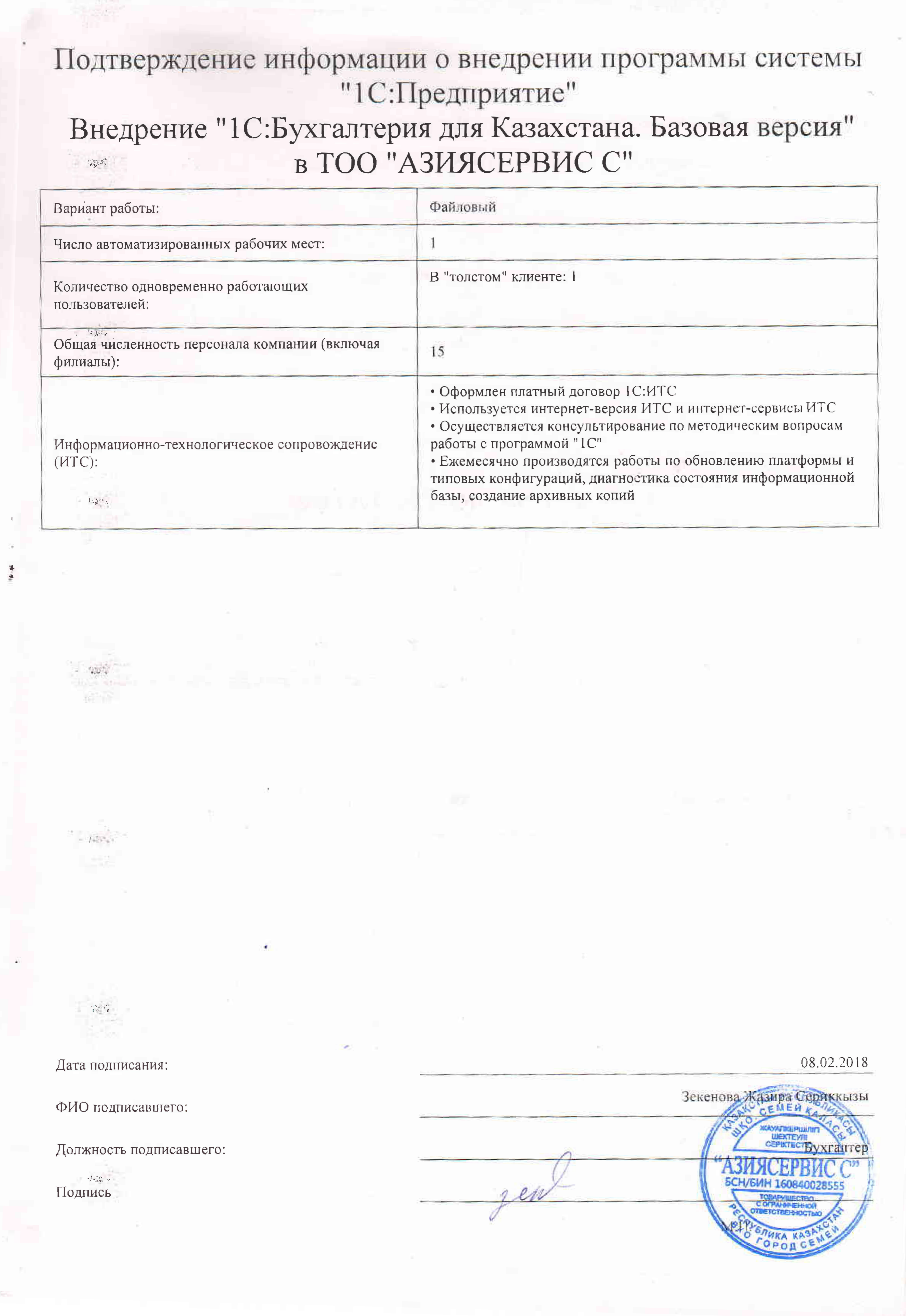 | Внедренное типовое решение: | 1С:Бухгалтерия для Казахстана. Базовая версия |