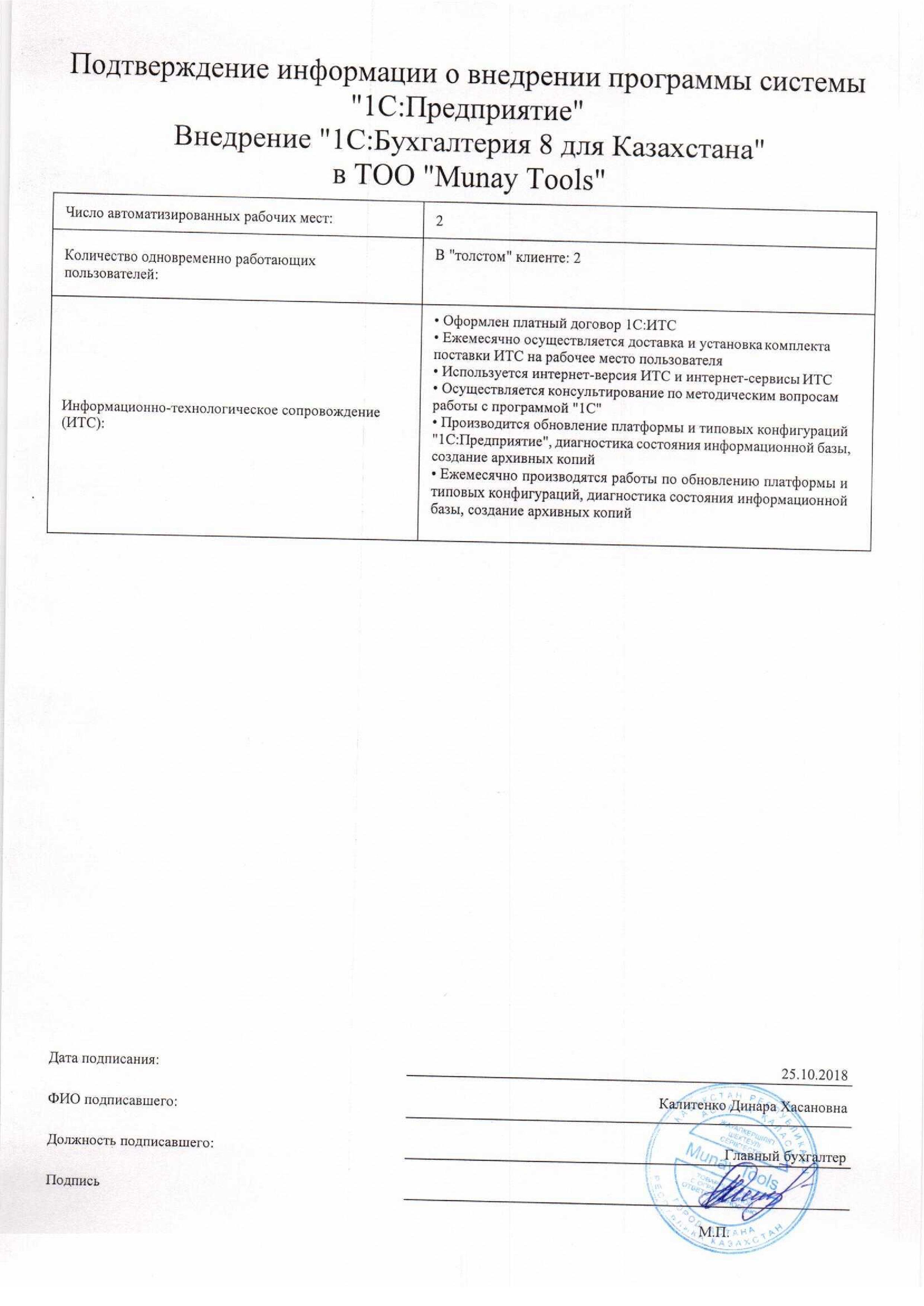 Внедрение «1C:Бухгалтерия 8 для Казахстана» в ТОО «Munay Tools»
