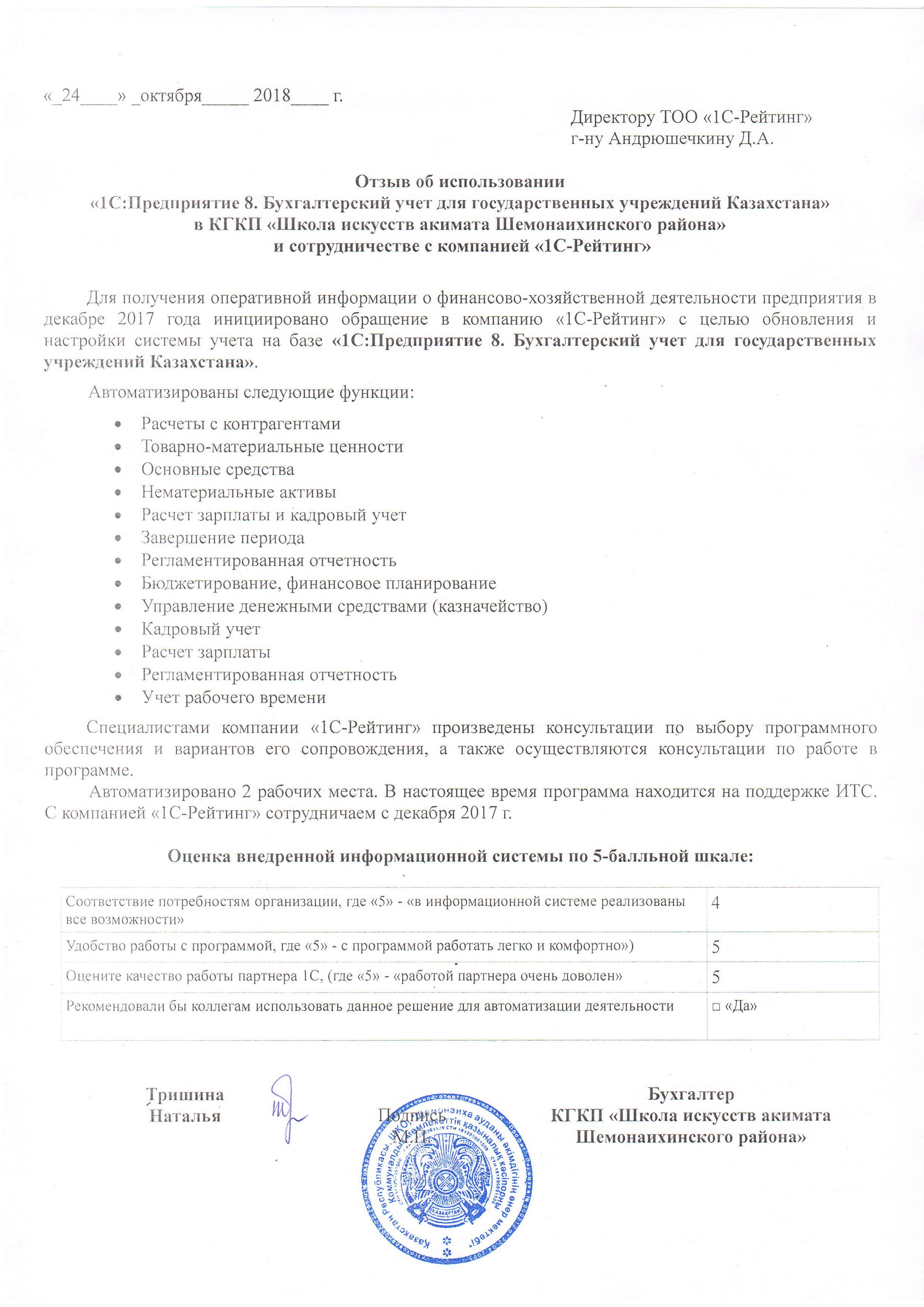- Осуществляется консультирование по методическим вопросам работы с программой «1С»