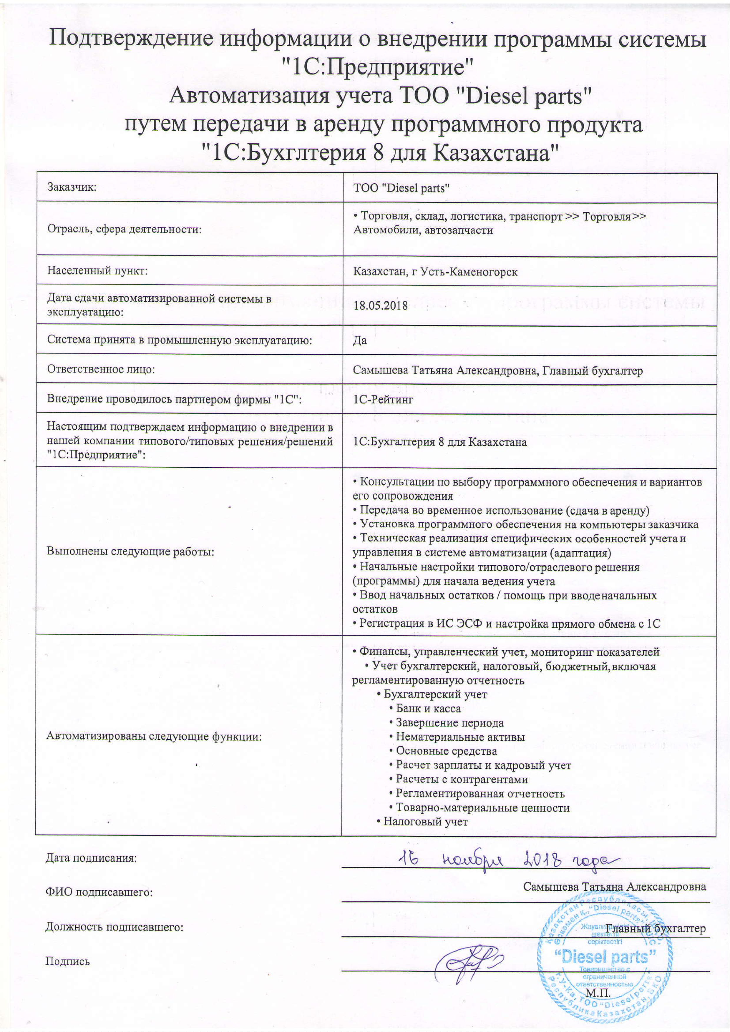 - Ежемесячно производятся работы по обновлению платформы и типовых конфигураций, диагностика состояния информационной базы, создание архивных копий