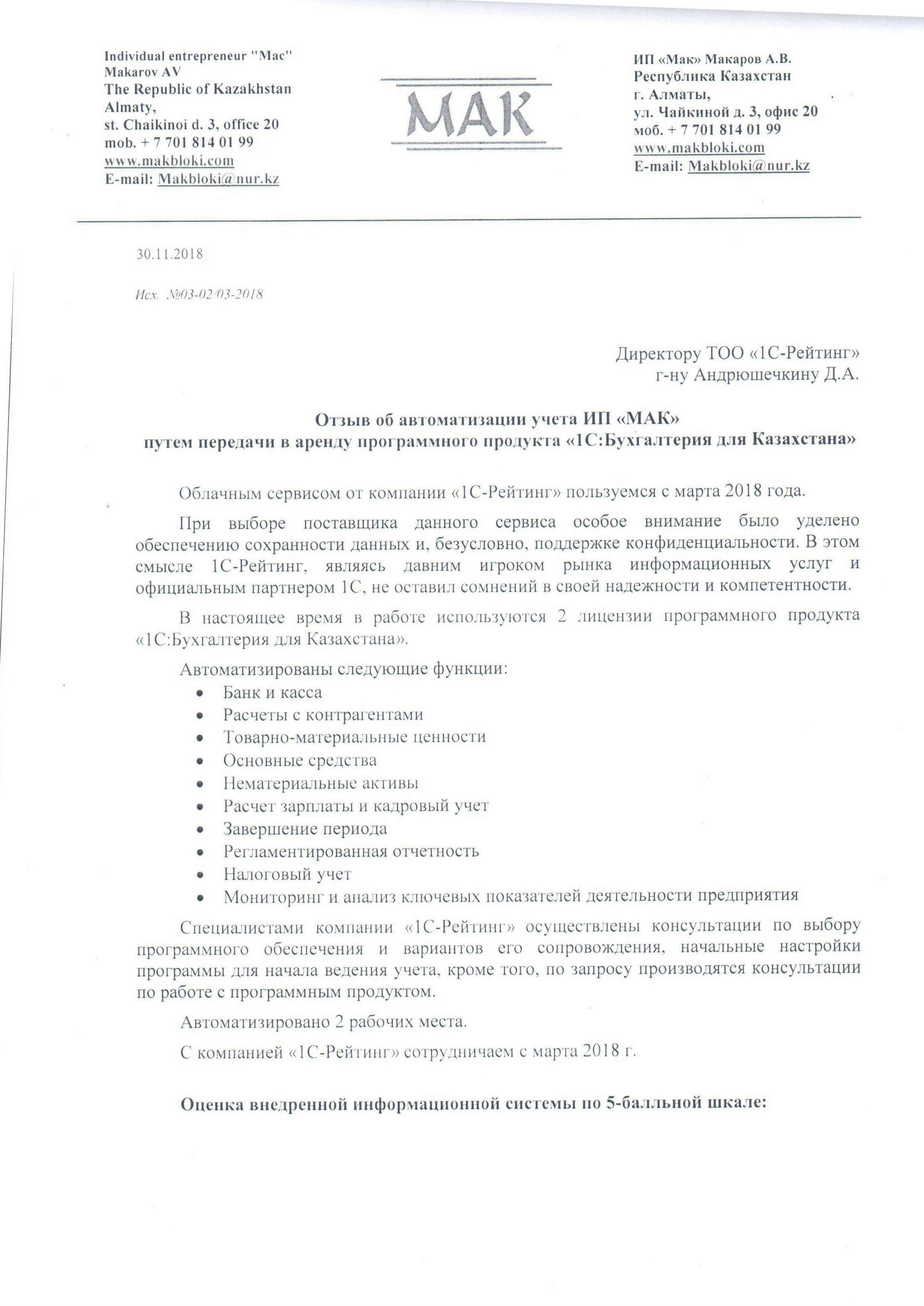| Арендованное типовое решение: | 1С:Бухгалтерия для Казахстана |