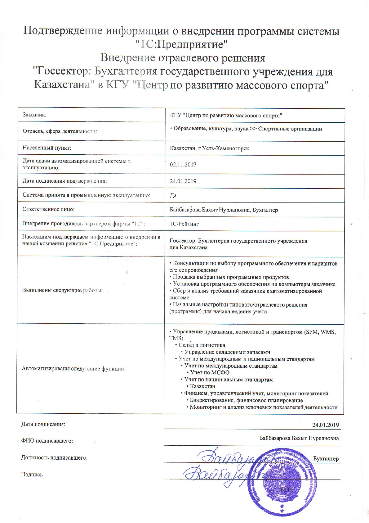 | Внедренное отраслевое решение: | Госсектор: Бухгалтерия государственного учреждения для Казахстана |
