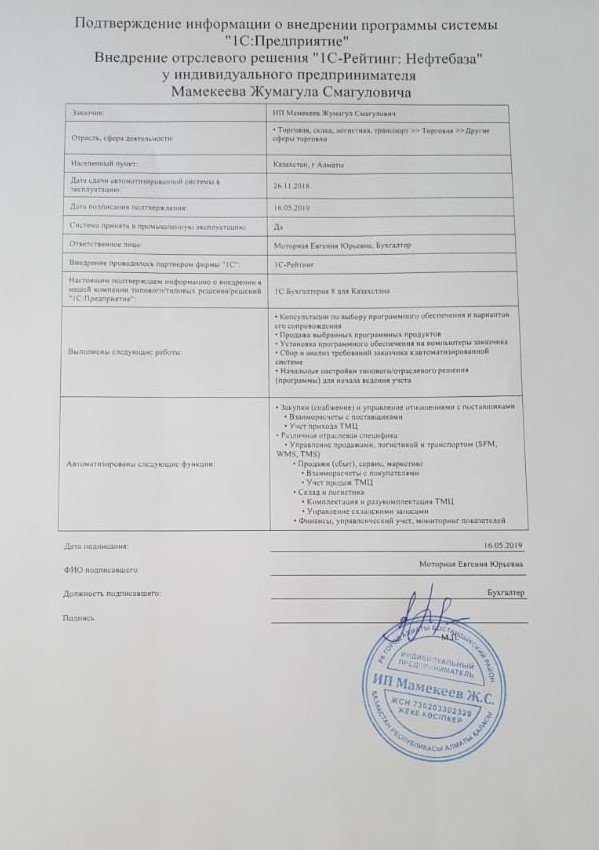 | Внедренное отраслевое решение: | 1С-Рейтинг: Нефтебаза |