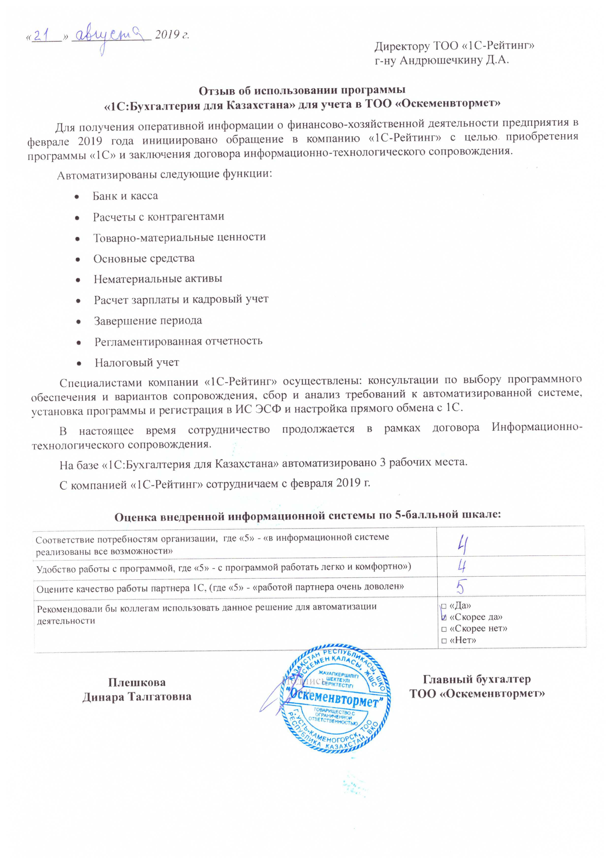 | Внедренное типовое решение: | 1С:Бухгалтерия 8 для Казахстана |