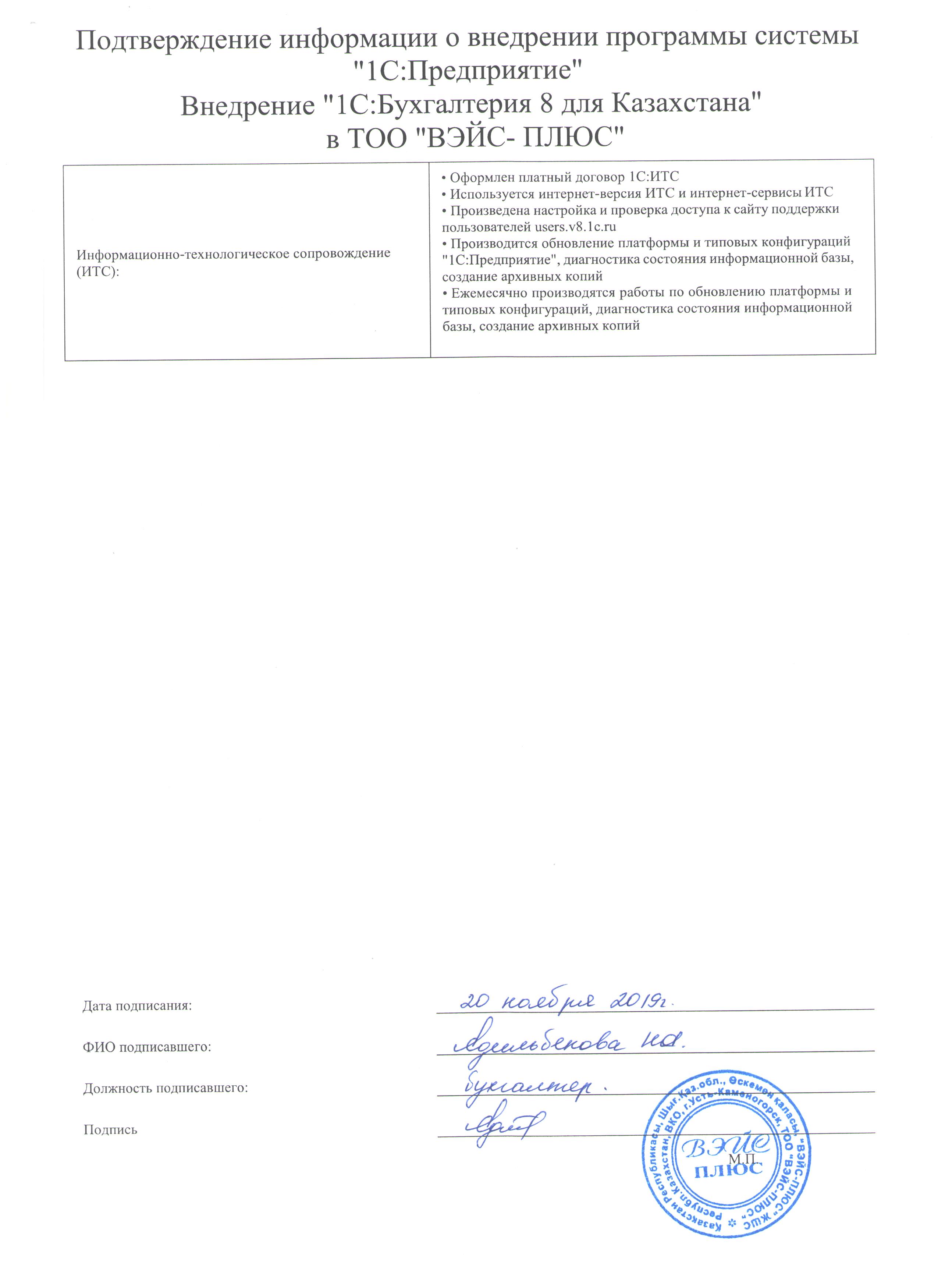 - Оформлен платный договор 1С:ИТС