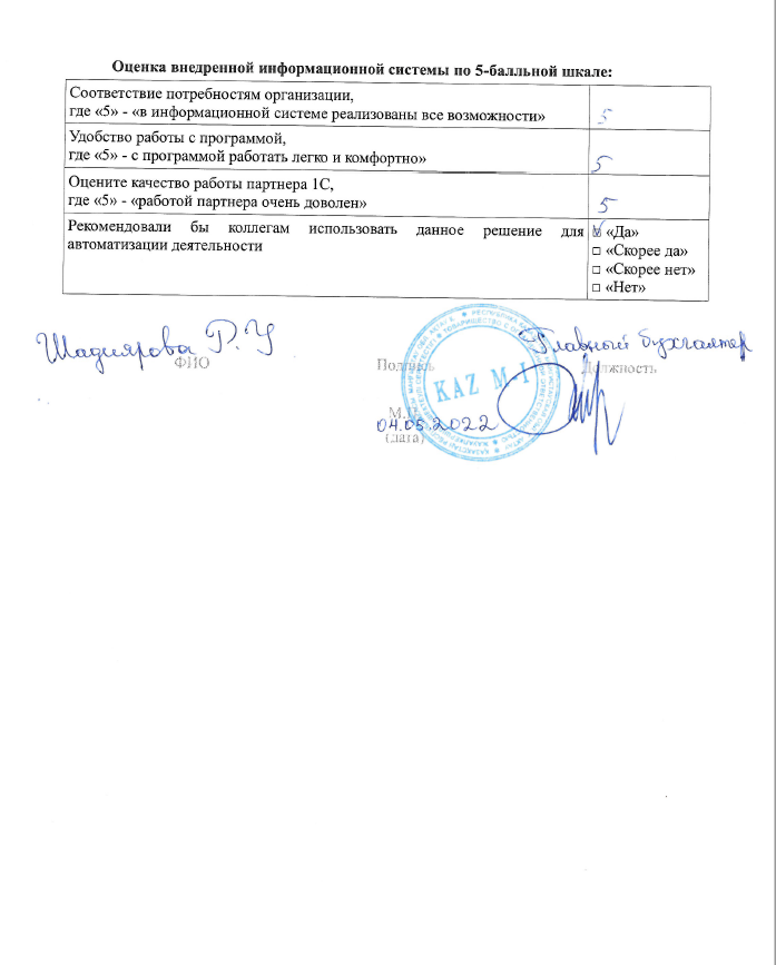 Проект полностью реализован и введен в эксплуатацию 01 апреля 2022 года. Команда исполнителя своевременно и эффективно выполнила все запланированные задачи для достижения поставленной цели проекта.