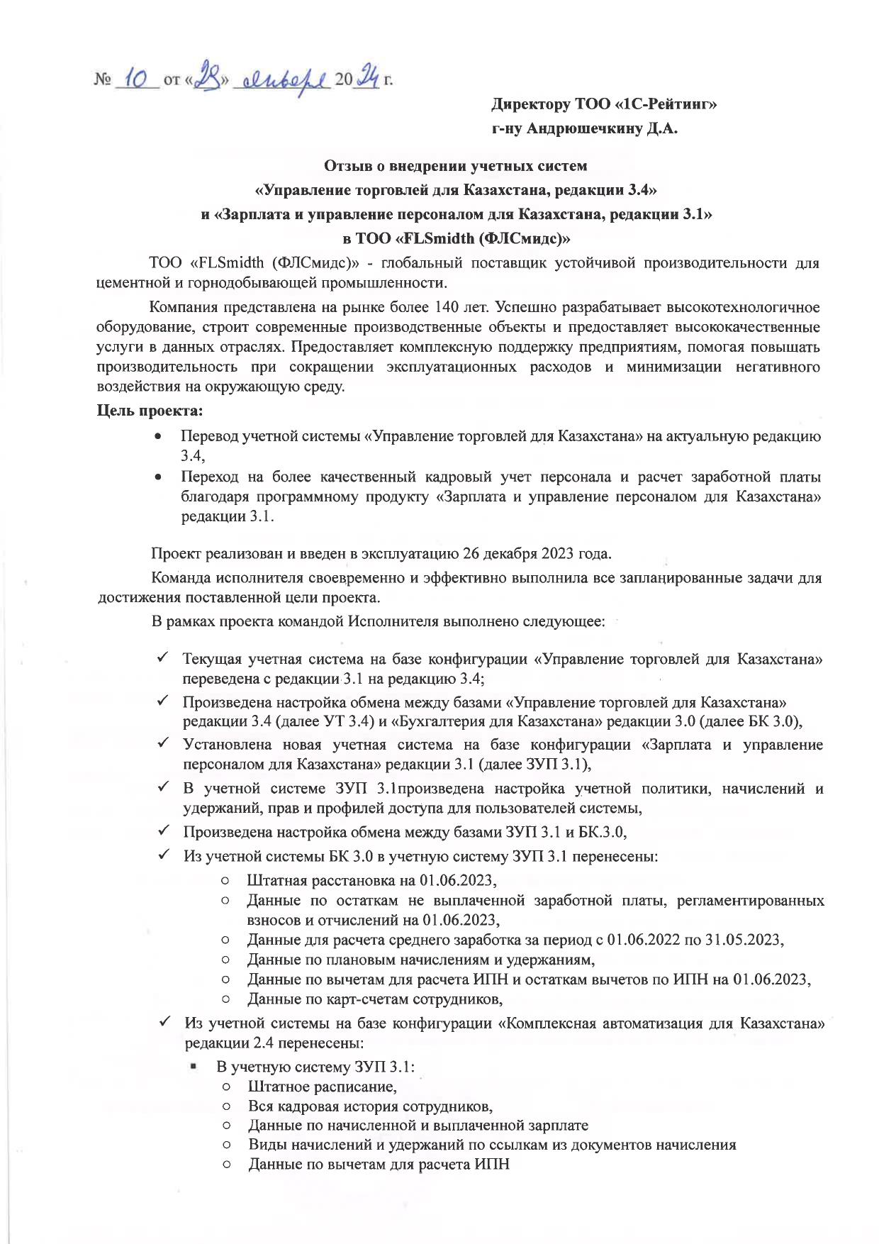 - Установлена новая учетная система на базе конфигурации «1С:Зарплата и управление персоналом для Казахстана» редакции 3.1 (далее ЗУП 3.1)