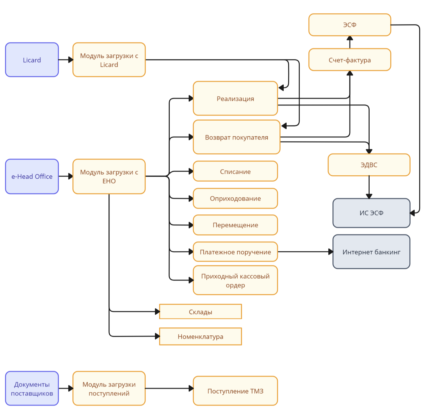 - оптимизирован учет в государственной системе ИС ЭСФ (СНТ, ЭСФ и Виртуальный склад). Это обеспечивает соответствие законодательным требованиям и улучшает взаимодействие с контролирующими органами. Благодаря автоматизации, данные передаются в режиме реального времени, что позволяет быстро реагировать на изменения и упрощает процесс контроля и аудита.