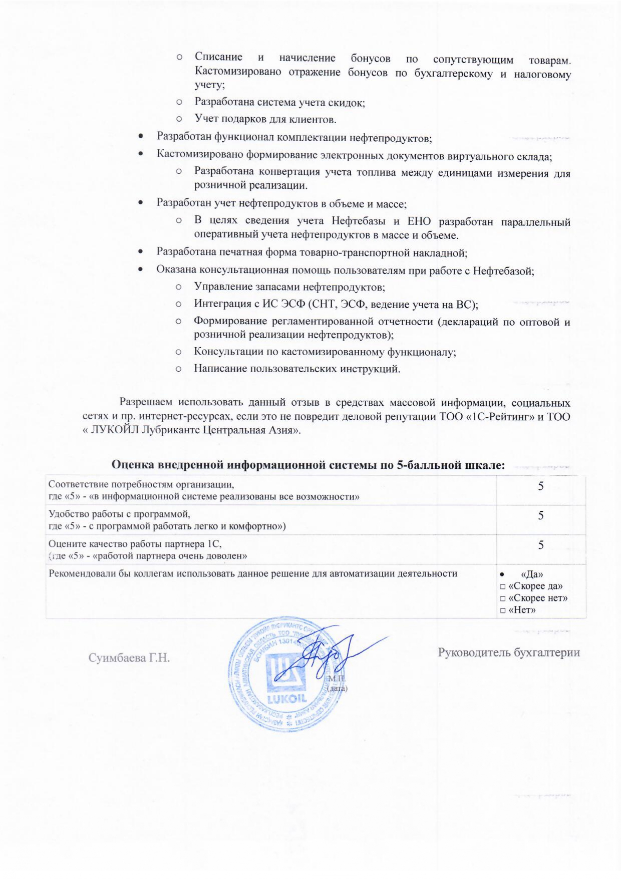 Выстроенная система позволяет трем пользователям эффективно вести учет 25 АЗС в разных регионах страны. Все вышеперечисленные аспекты автоматизации учета не только оптимизируют рабочие процессы, но и способствуют повышению конкурентоспособности бизнеса. Внедрение современных технологий в учетные процедуры является важным шагом на пути к успешному развитию компании и улучшению обслуживания клиентов.