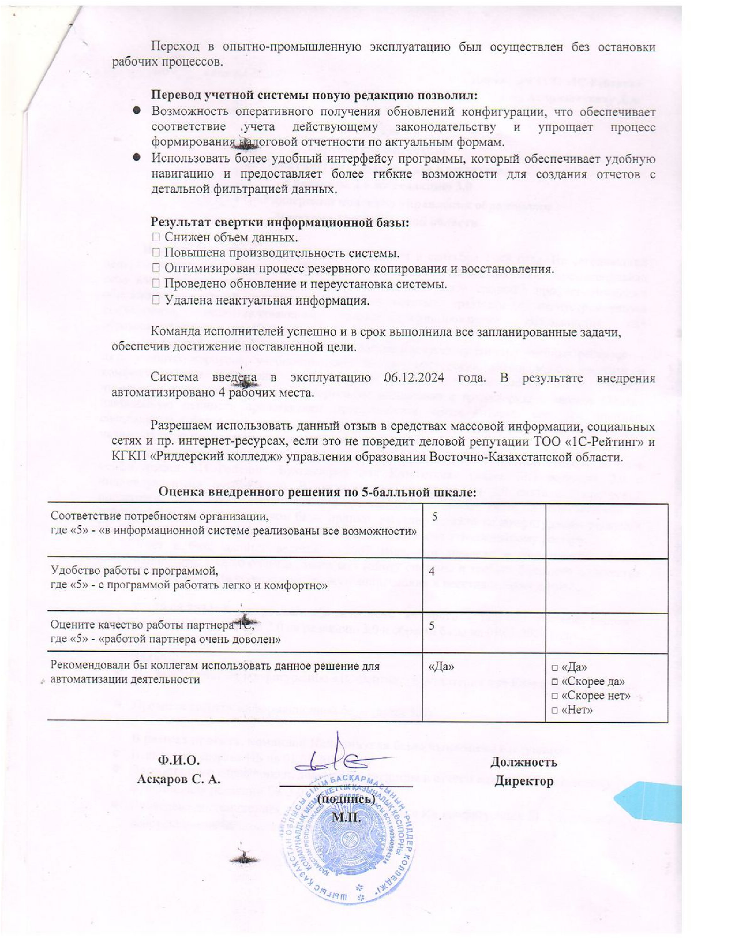 Бухгалтерский учет был автоматизирован и реализован в учетной системе на базе конфигурации «1С:Бухгалтерия для Казахстана» редакция 2.0 с индивидуальными доработками. В связи с тем, что редакция 2.0 снята с технической поддержки, для обеспечения ведения регламентированного учета в соответствии с действующим законодательством было принято решение перейти на конфигурацию редакции БК 3.0, с переносом всех существующих доработок согласно утвержденному реестру.