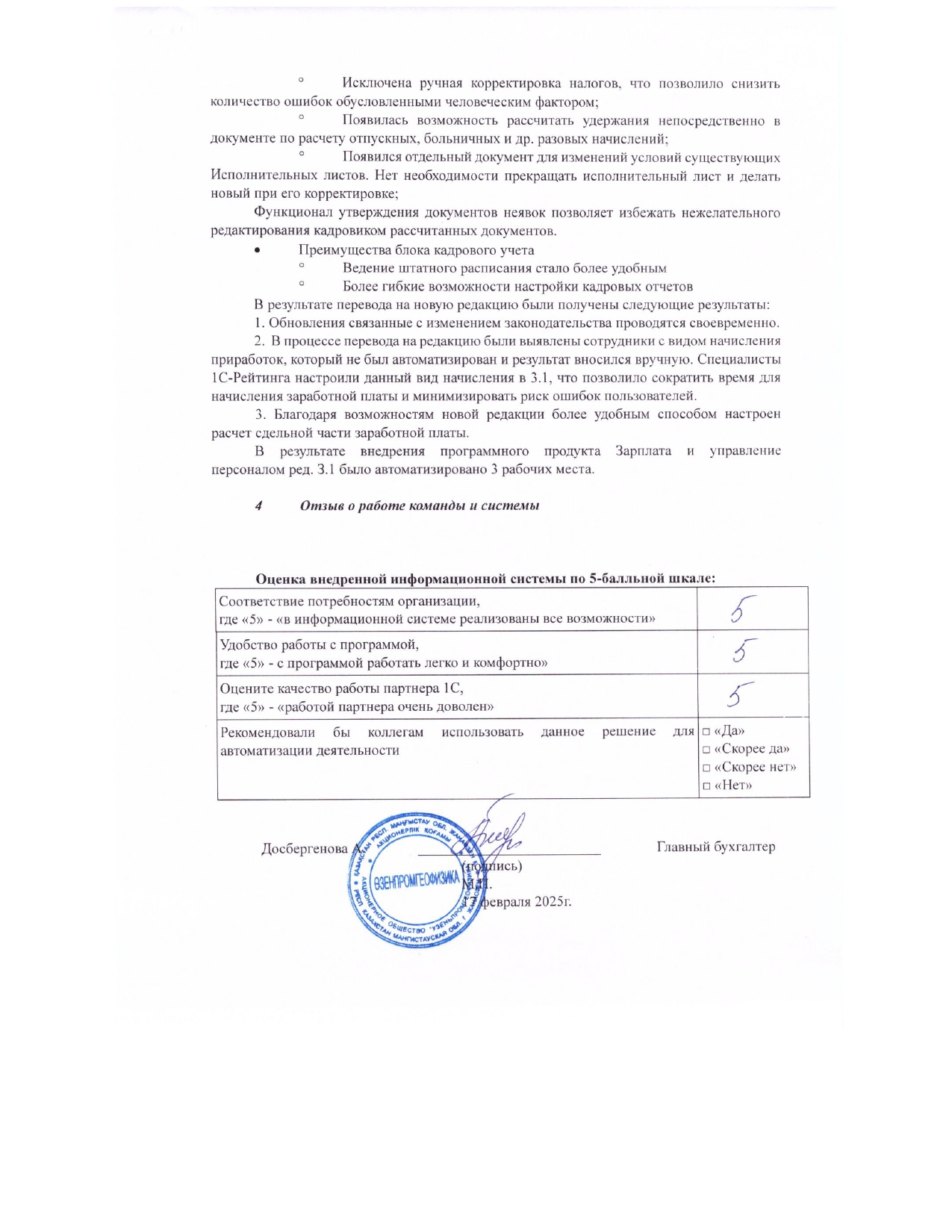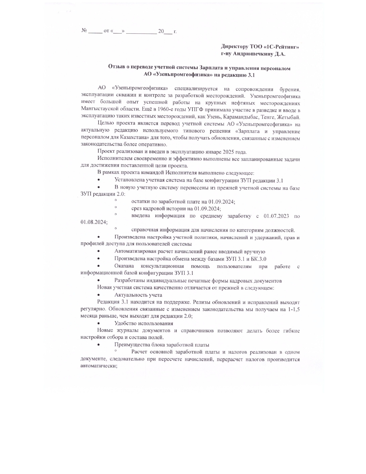 - Установлена учетная система на базе конфигурации «1С:Зарплата и управление персоналом для Казахстана» редакции 3.1