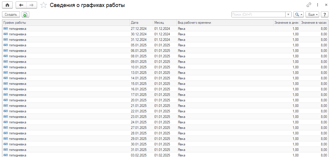 Данные обо всех графиках работ хранятся в одноименном справочнике.
