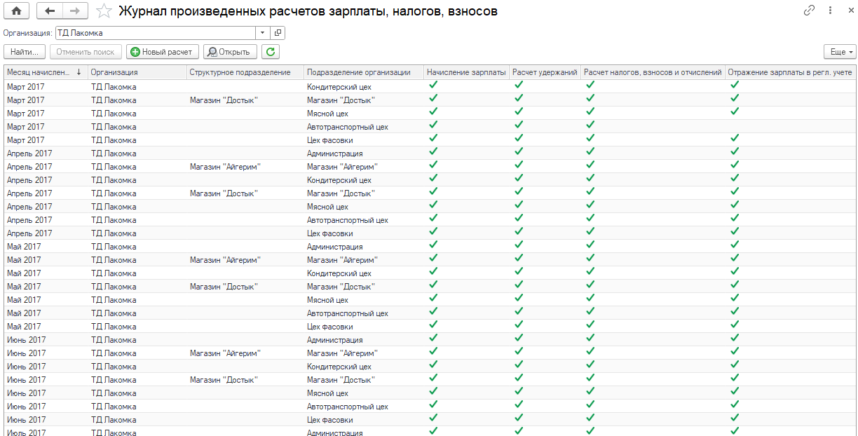 удержаний, налогов, взносов и отчислений предусмотрена обработка Журнал произведенных расчетов