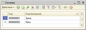 При первом запуске автоматически создаются сезоны «Зима» и «Лето» и задается период действия сезонов по умолчанию.