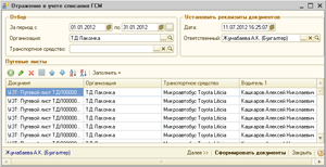 - Учет выдачи ГСМ путевыми листами и заправочными ведомостями;