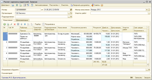 Если ведется учет затрат по участкам работ (признак ведения учета по участкам указывается в настройках параметров учета), то для каждого участка работ, на котором работал водитель, будет создана отдельная строка расчета. Если у участка работ задано подразделение, и в регистре «Счета учета затрат на транспортные средства» указан счет и прочая аналитика затрат, то автоматически будет заполнен реквизит "Отражение в бухучете", если подходящего способа отражения в бух. учете найти не удается, то автоматически создается новый при наличии у пользователя соответствующих прав. Это позволяет отнести затраты на заработную плату на те подразделения, которым установлен в соответствие участок работ.