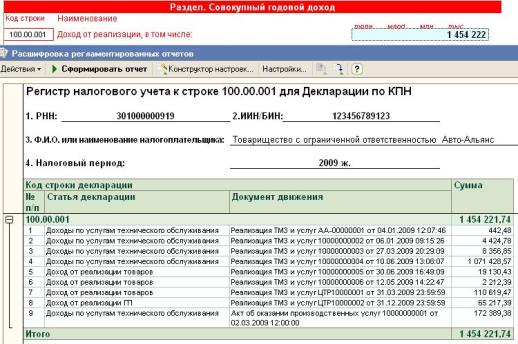 Формирование Декларации по КПН, формы 100.00 в «1С:Бухгалтерия 8 для Казахстана»