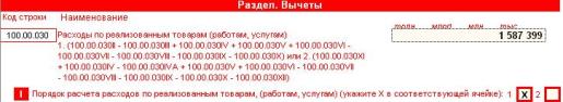 Строка предназначена для определения суммы вычетов по реализованным товарам и может быть рассчитана одним из двух способов.