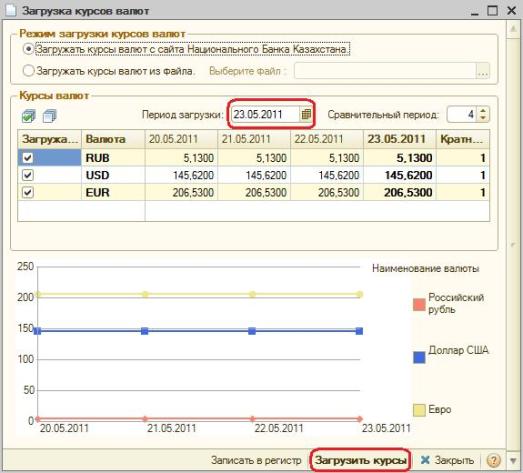 Как подгрузить курсы валют через интернет в типовой конфигурации «Бухгалтерия для Казахстана»?