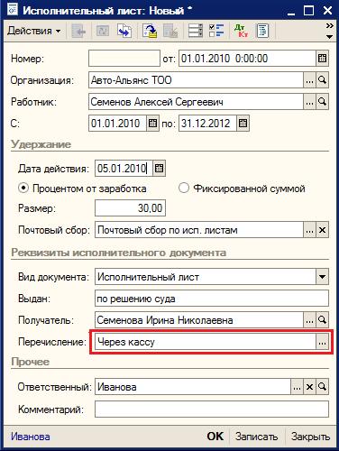 | Как провести удержания с работника по исполнительному листу в конфигурации «Бухгалтерия для Казахстана»? |